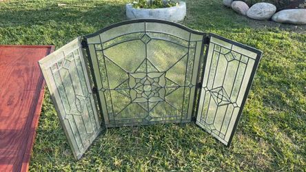 Elegant 3-Panel Leaded Glass Fireplace Screen - Vintage Style Floral Motif$150Jurupa Valley, CA