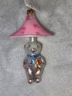Vtg 1993 Christopher Radko Bear Glass Ornament rainy day friend signed pink Rare$100Montclair, CA