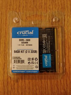 Crucial 64GB (2 x 32GB) DDR5 SODIMM 5600$550Irvine, CA