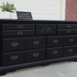 9 Drawer Dresser With 2 -2 Drawer Nightstands- All Solid Wood - Black With Gold $535Pico Rivera, CA
