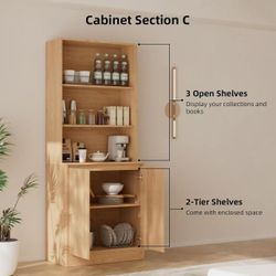 71" Tall Arched Cabinet, 5-Tier Arched Kitchen Pantry with Glass Doors & Shelves, Modern Display Arch Cabinet with Adjustable Feet, Wooden $120Ontario, CA