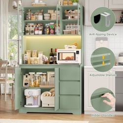 Satavia 70.9'' Kitchen Pantry with LED Lights and Charging Station, Microwave Shelf$0Pico Rivera, CA