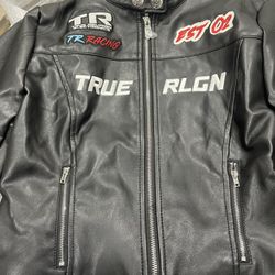 True Religion Moto Jacket Black M Lightweight Logo Zipper Patch Accents Zip Snap$70Fontana, CA