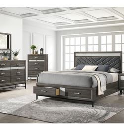 Bedroom set 4 pc Queen size Dark Oak finish, Light Grey fabric, New Especial price$1,360Santa Ana, CA