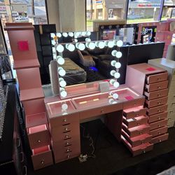 Brand New Vanity 13 Drawers Pink With LED Light Inside Drawers One Side Only & XL Hollywood Mirror W/ Bluetooth $899$899Bloomington, CA