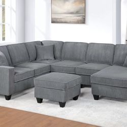 106” New Plush Gray Sectional, Sectional And Storage Ottoman, Sectionals, Sofa, Couch, Gray Couch, Grey Couch, Corduroy Sectional, USB Charger Sofa Di$499Brea, CA