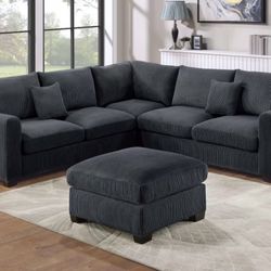 ✅️✅️️✅️4 pc Grey cordury fabric upholstered sectional sofa with ottoman✅️✅️$445Lakewood, CA