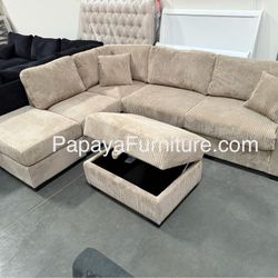 New! Plush Ivory Sectional, Sectional And Storage Ottoman, Sectionals, Sofa, Couch, Beige Couch, Ivorry Couch, Corduroy Sectional, USB Charger Sofa Di$499Chino, CA