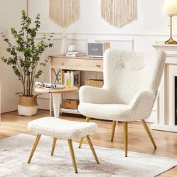 Wingback Chair with Stool, Polyester Cover, TV Chair, Armrest Chair, Upholstered Folding Chair, Cocktail Chair, Teddy Plush, Stylish Design, White$109Norwalk, CA