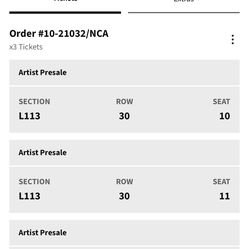 3 Tickets To Alanís Morissette Tonight $600Citrus Heights, CA