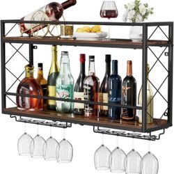 Wine Rack Wall Mounted 2 Tier Wall Wine Rack with Glass Holder, Double Layer Anti-Drop Crossbar, 31.5" Metal Wood Wall Mount Wine Holder for Home Kitc$40Rancho Cordova, CA