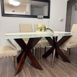 Pier 1 style frosted glass dining table with double X wood base – seats 4–6$325Folsom, CA