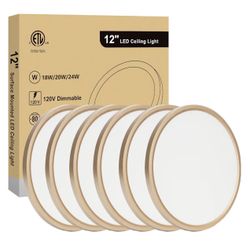 12 Inch Ceiling Light Fixture, Dimmable 0.67 Inch Super Slim, 24W 5CCT Round Ceiling Light for Laundry, Bedroom, 12 Inch 5Pack Gold$50Citrus Heights, CA