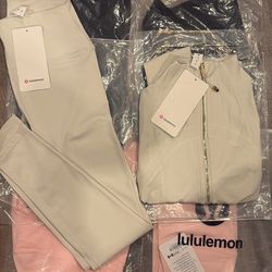 White ivory gold zipper cropped lululemon define jacket set$100Rancho Cordova, CA