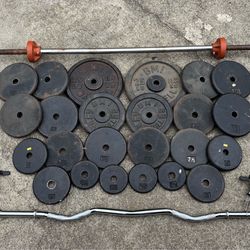 Complete Standard 1” Weight Set 225lbs+Barbell+EZ Curl+(2)Dumbbell Handles$285Elk Grove, CA