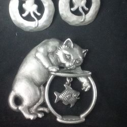 Collectible JJ Stamped Pewter Earrings And Pin$30Citrus Heights, CA
