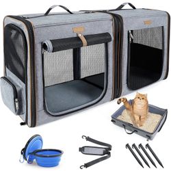 Lekereise Large Cat Carrier for 2 Cats, 2-in-1 Cat Travel Carrier with Litter Box, (17.7" x2) x16.5"x13" Pet Carrier with Zipper Locks for Moving Acro$40Rancho Cordova, CA
