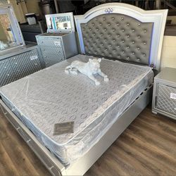 Silver Bedroom Set /Bed Frame/Nightstands/ Dresser And Chests Same Day Delivery$999Sacramento, CA