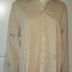 Clay Moda Italiana Beige Embroidered Long Sleeve Blouse/Top (L)
