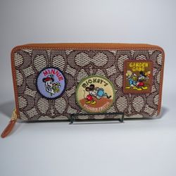 Coach X Disney Signature Textile Jacquard Mickey Mouse Garden Gang Zip Wallet With Patches $175Sacramento, CA