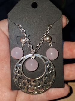 Rose quartz necklace and earring set$20Citrus Heights, CA