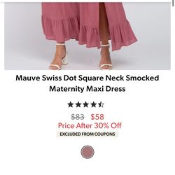 Pinkblush Hello Miz Mauve Swiss Dot Square Neck Smocked Maternity Maxi Dress New medium$35Elk Grove, CA