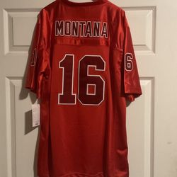 San Francisco 49ers Joe Montana Mitchell and Ness Sewn Stitched 1989 Retro Faithful Red Color Rush Jersey Adult men’s size Medium New with tags $70Sacramento, CA