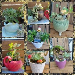 $5 Each. All Ceramic! 5-6" Tall POTS W/ SUCCULENTS $5Sacramento, CA