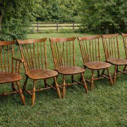 Vintage Solid Wood Windsor Chair Set Nichols & Stone 7pc Dining Chairs DIY$280Citrus Heights, CA