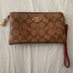 Coach Wrist Wallet khaki brown coral trim$15Carmichael, CA