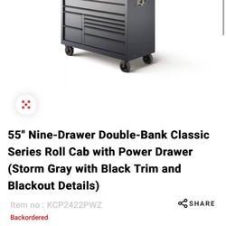 55" Nine-Drawer Double-Bank Classic Series Roll Cab with Power Drawer (Storm Gray with Black Trim and Blackout Details)$7,000Salinas, CA