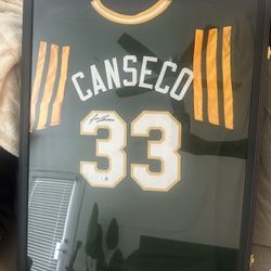 Signed Jose Canseco Custom XL Jersey In frame Beckett witness Authenticated$300Hollister, CA
