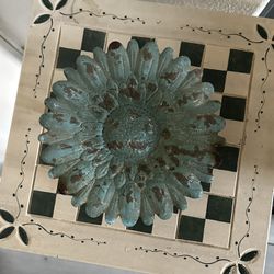Farmhouse Soft Green & Gold Galvanized Metal Candle Holder 8” inch wide 4” inch tall $10Salinas, CA