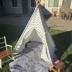 Teepee Tent Gray & White Zigzag Striped Thick Canvas $35Salinas, CA