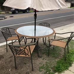 Patio Furniture W/ Glass Top, 4 Chairs, Covers And Umbrella $150Hollister, CA