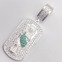 925 Sterling Silver St Jude Iced Pendant – Green & Clear CZ, Religious Charm$90Watsonville, CA