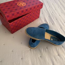 Tory Burch Designer Peep Toe Amanda Flats Blue Leather Flats 7.5$109Hollister, CA