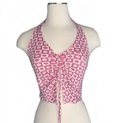 Y2K Pink & White Floral Halter Top 🌸 Adjustable Drawstring | Rebellious Dreamer Size M 💖 Retro Coquette Look | Roller Rink Babe Vibes$12Hollister, CA