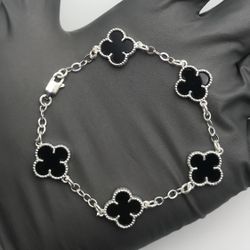 Solid 925 Sterling Silver Black Clover Bracelet 7in$80Watsonville, CA