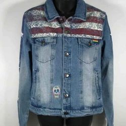 MARVEL Multi-colored Long Sleeve Button Jean Jacket Coat Women - Size L -NWT$75Hollister, CA