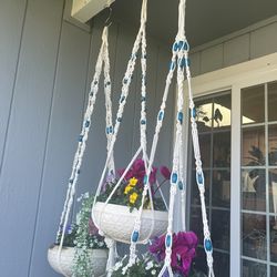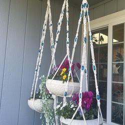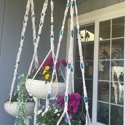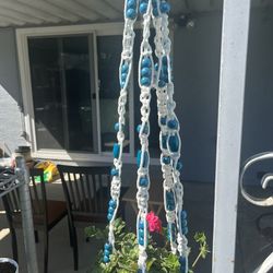 A Beige Handmade Macrame Plant Hanger With Blue Wooden Beads For You Or Someone Special$15Watsonville, CA
