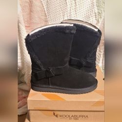 NEW UGG Koolaburra Bailey Bow Ribbon Shearling Sheepskin Black Suede Boots 9$89Hollister, CA
