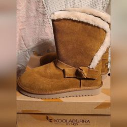 NEW UGG Koolaburra Bow Ribbon Tan Chesnut Suede Shearling Sheepskin Boots 8$89Hollister, CA