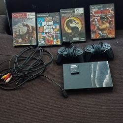 Sony slim PS2, 4 games,2 controllers memory card and all the wires$155Corona, CA