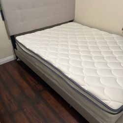 Queen bed frame, box spring, mattress, and night stand$500Beaumont, CA