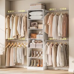 White Wooden Closet System, 4.5-10ft Expandable Closet Organizer with 5 Hanging Rods & 4-Tier Shelving Tower, Adjustable Walk-in Reach-in Wardrobe Sto$100Ontario, CA