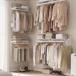 HOME Closet System, Closet Insert Organizer, 4-8 ft, Adjustable Metal Shelving Unit with 6 Hanging Rods, 6 Shelves, and Hooks, for Pantry $50Ontario, CA