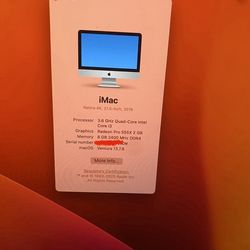 Apple iMac 2019 Quad Core i3 - 8G Ram - 1TB - Retina 4K$250Riverside, CA