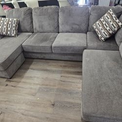 NEW Large U Shape Dark Grey Chenille Fabric Sectional Sofa and Reversible Chaise Ottoman Set Ashley Style BIG Couch SALE Sleeper combine into Bed $799San Bernardino, CA