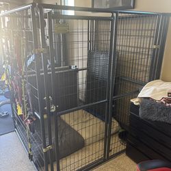 Double staked dog pet cage kennel size 43 with divier and feeidnh bowls d$320Chino Hills, CA
